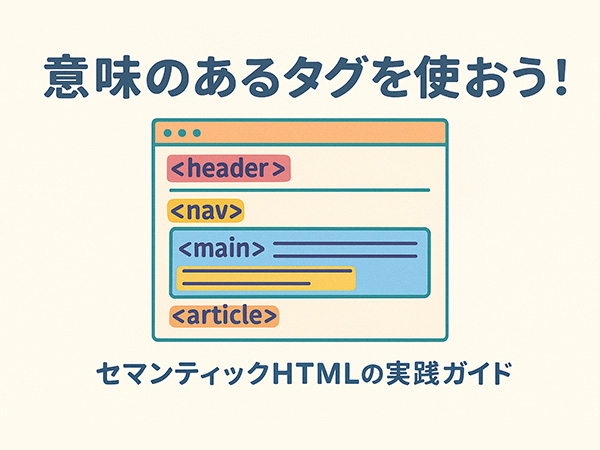 といった基本構造を守り、見た目だけでなく文脈に基づいたタグ選定を行いましょう。<div>
