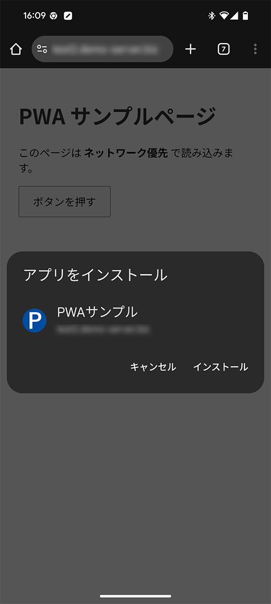 ブラウザ上で表示された状態から「アプリをインストール」もしくは「ホーム画面に追加」操作を行うことで、端末にインストールできます。